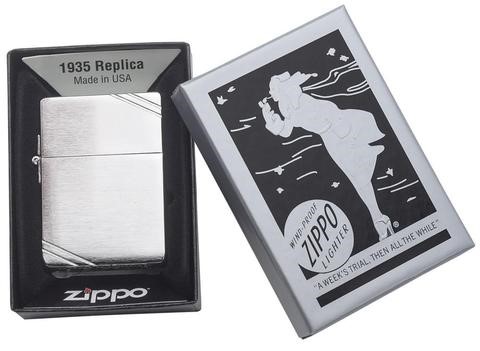 Зажигалка ZIPPO 1935 Replica Brushed Chrome 1935 от официального дилера Zippo в Нефтекамске. Вы можете дополнительно заказать гравировку, которая подчеркнет Вашу оригинальность и придаст памятность статусному подарку.
