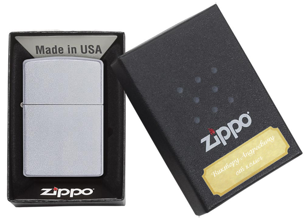 При покупке зажигалки Zippo от 8000 рублей - гравировка текста на одной части корпуса выполняется бесплатно.